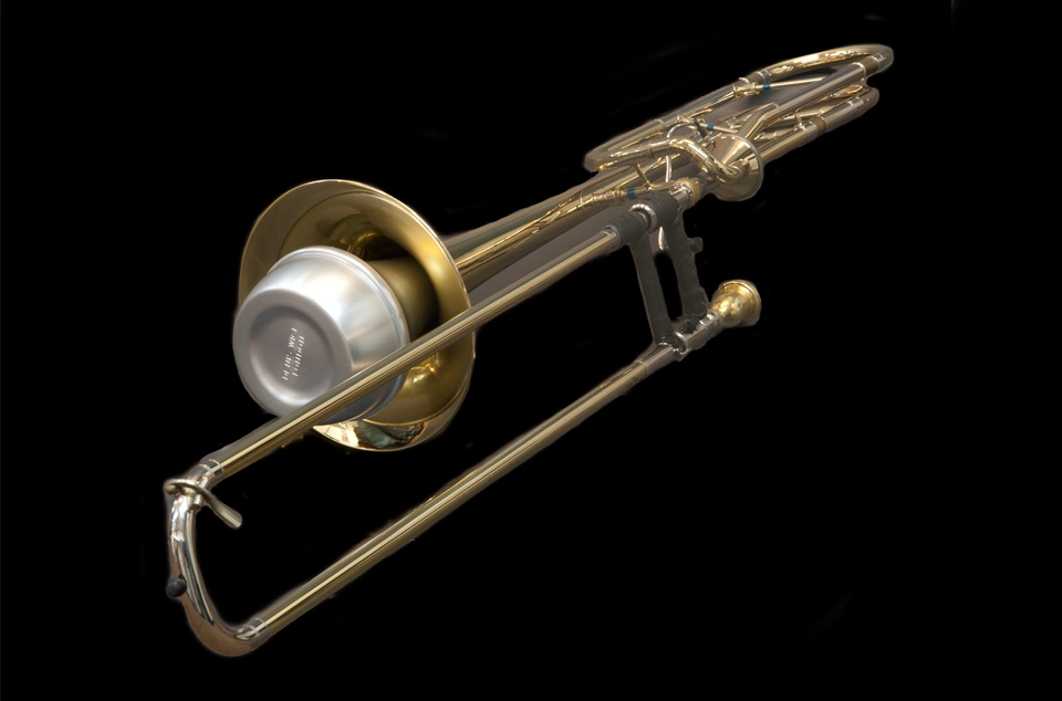 O trombone também possui um bocal para produzir o seu som. Mais grave que o trumpete e mais agudo que a tuba, ele se distingue de todos os outros instrumentos de seu naipe por utilizar uma vara para mudar a altura de sua notas. Assim como o trumpete, também pode fazer uso de diversos tipos de surdina para alterar o seu timbre.