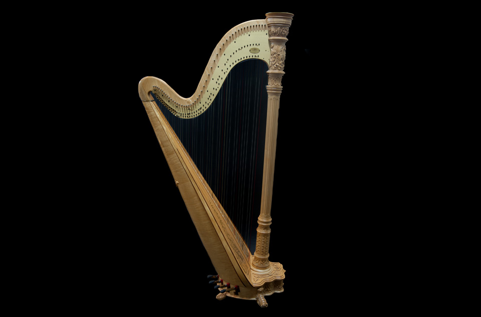 Considerado um dos instrumentos mais antigos do mundo, a harpa, como utilizada na orquestra, é um instrumento harmônico de cordas dedilhadas de grande extensão. Possui pedais para mudar a afinação de suas cordas, dispostas sobre uma coluna de madeira.